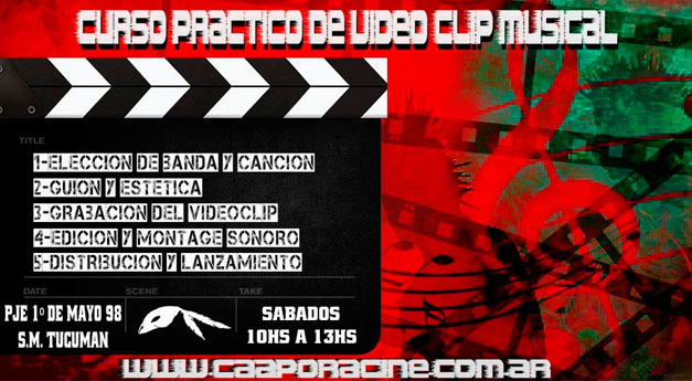 Curso dirigido a Realizadores y Músicos sobre la realización integral de un videoclip musical desde la selección del tema hasta la edición del video, con bajo presupuesto y de alta calidad.