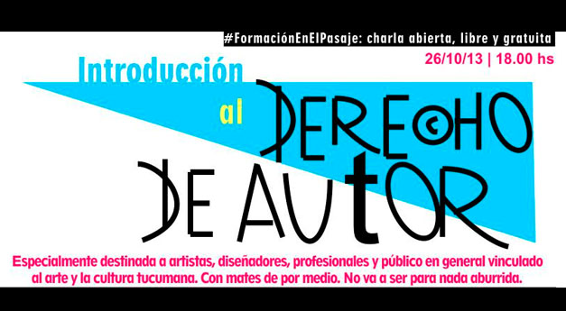 Comenzamos con esta serie de charlas informativas sobre «Derecho de Autor», destinada especialmente a artistas, diseñadores, profesionales y público en general vinculado al arte y a la cultura tucumana.