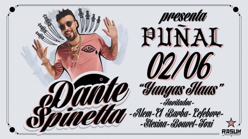Dante Spinetta llega a Tucumán este sábado 2 de junio para presentar su nuevo disco solista «Puñal», en el marco de una gran fiesta en las alturas en Yungas Haus (Villa Nougues) con la participación de músicos y DJs locales: Alem, Sebastian Lefebvre, El Barba, Nacho Stesina, Fito Bouvet, Dancer Toxi y VJ Paolo.